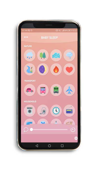 Baby Sleep – Оваа апликација содржи звуци кои ги смируваат бебињата. На почетокот, додека не го земавме апаратчето за бели звуци оваа апликација ни беше многу користена. Ја користевме дома, но и кога се шетавме надвор во количка и ги пуштавме звуците за да се смири и заспие. Има звуци од природа, сообраќај, работи во домакинството како фен или правосмукалка, бели звуци и приспивни песнички. Постои и тајмер кој може да го подесите за да престане звукот што за мене беше многу корисно. Апликацијата е бесплатна за симнување на Google Play. Во App Store не успеав да ја најдам, но секако ќе најдете соодветна замена. |